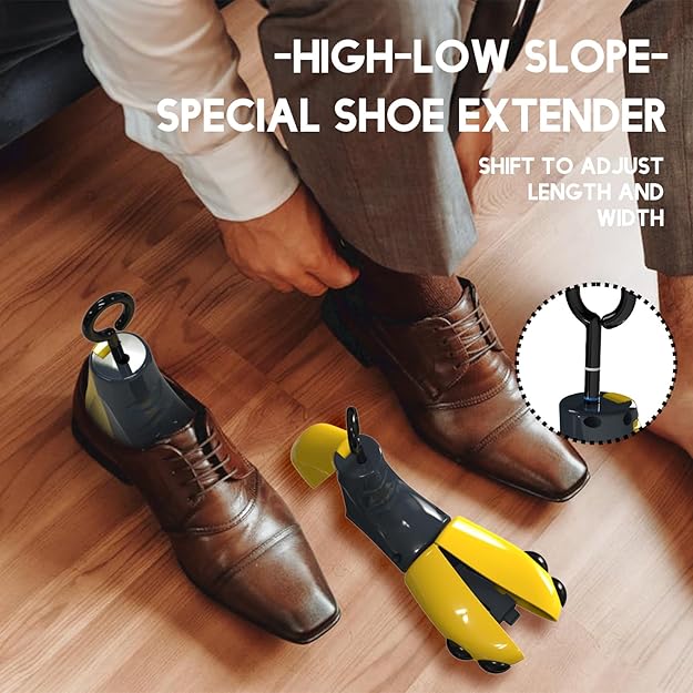 CUSTOMIZABLE ADJUSTMENTS FOR A PERFECT FIT – With dual adjustable shafts, this stretcher allows you to fine-tune both the length and width of your shoes. Whether you need to expand the toe box or add extra room in the heel, the precise adjustments help relieve common foot discomforts like plantar fasciitis and bunions.