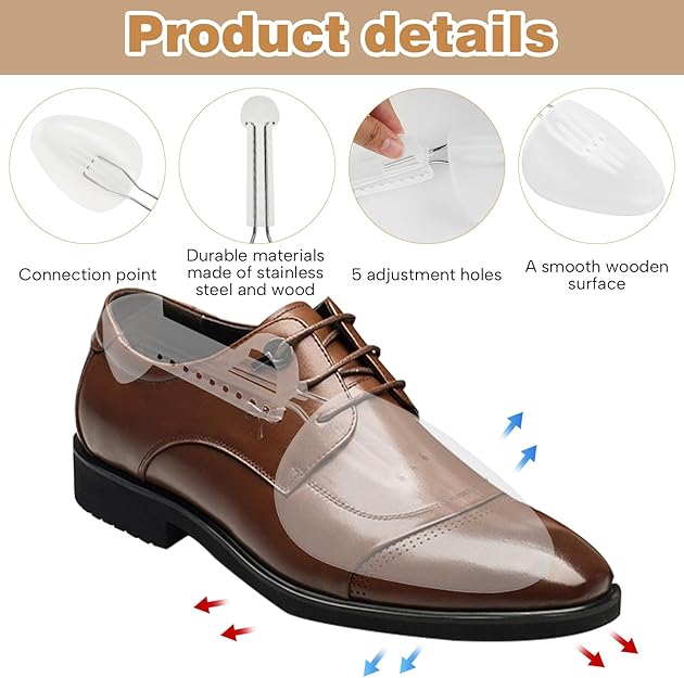 • 【Adjustability】The length of the shoe shaper is adjustable, ranging from 9.5 inches to 12.5 inches (24 cm to 31 cm), suitable for men's shoe sizes 5.5 to 11; to meet the shape requirements of different styles of shoes, whether it is leather shoes, sports shoes, etc